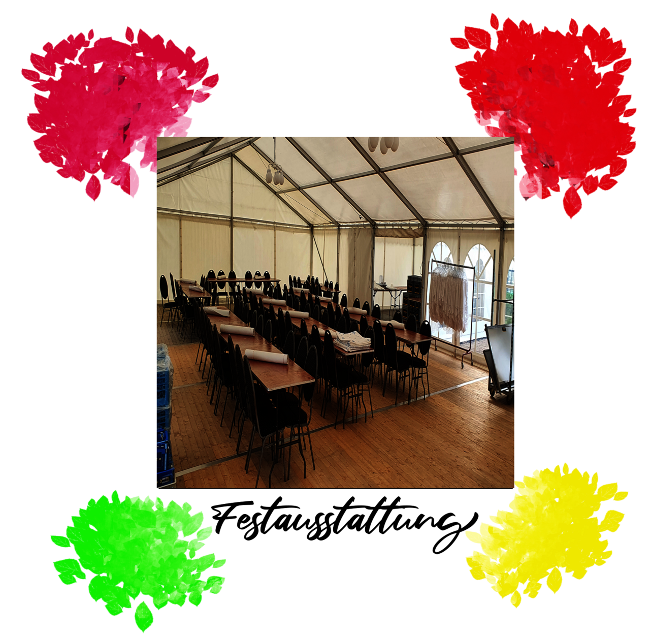 Kompletter Service: Aufbau, Dekoration und auf Wunsch auch Catering.